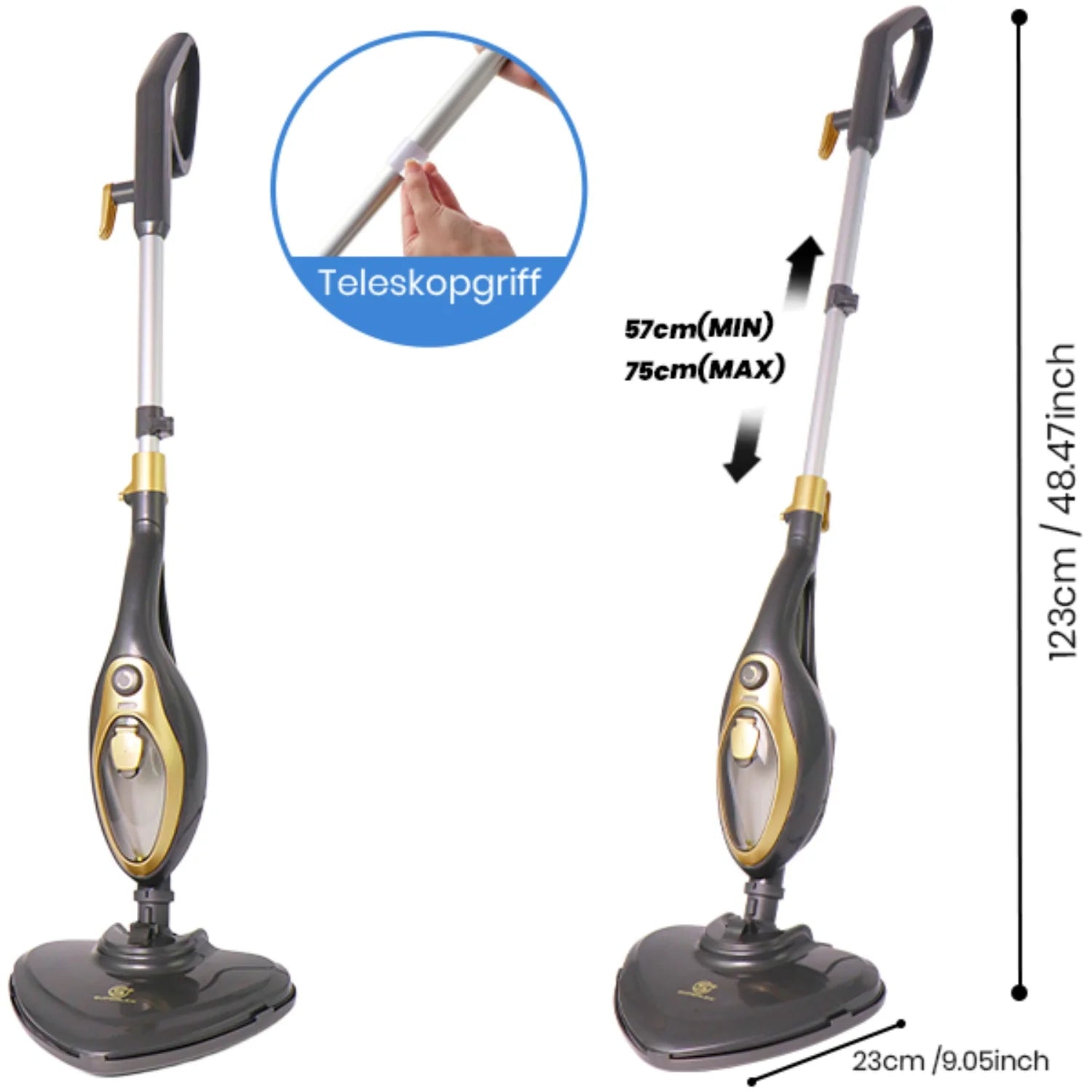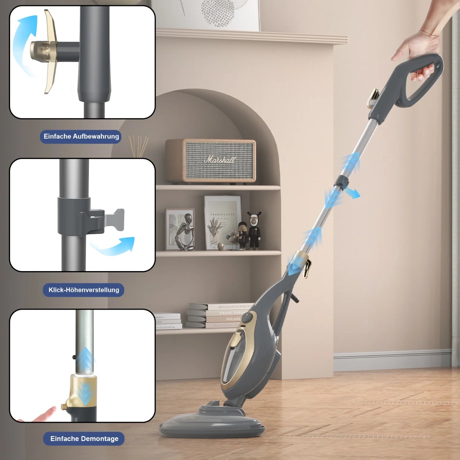 Équipé de neuf accessoires polyvalents, ce balai vapeur se transforme facilement en nettoyeur vapeur portatif. Idéal pour les sols, les tapis, les fenêtres, les tissus d'ameublement, la cuisine, la salle de bain, les coutures et même le repassage des tissus. Un seul appareil répond à tous vos besoins de nettoyage domestique.
