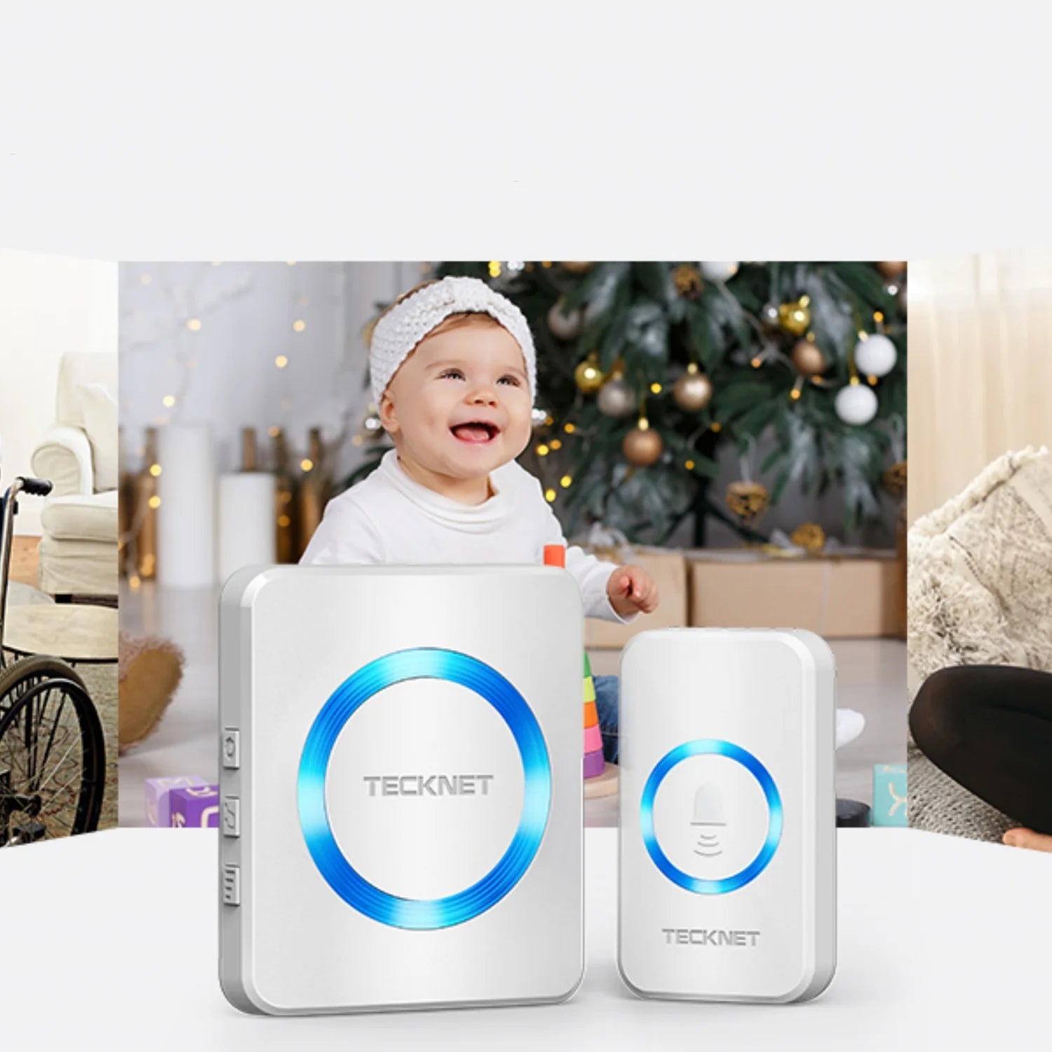 Branchez simplement le récepteur sur une prise secteur. Le bouton poussoir peut être fixé au chambranle de la porte avec des vis ou du ruban adhésif double-face. Tous les accessoires nécessaires sont inclus pour une installation facile.