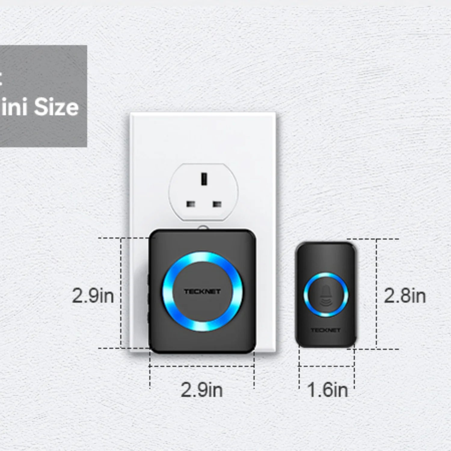 TECKNET HWD01888 Sonnette Sans Fil 5 Volumes 60 Sons 400m Portée - Noir