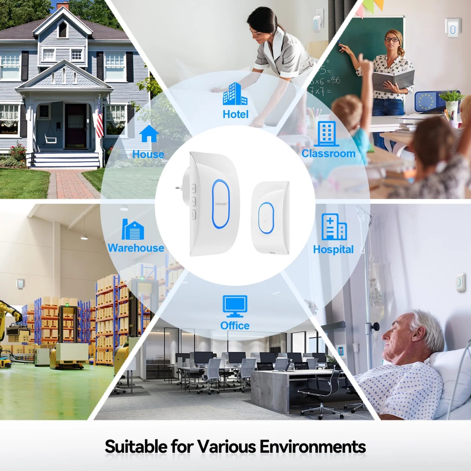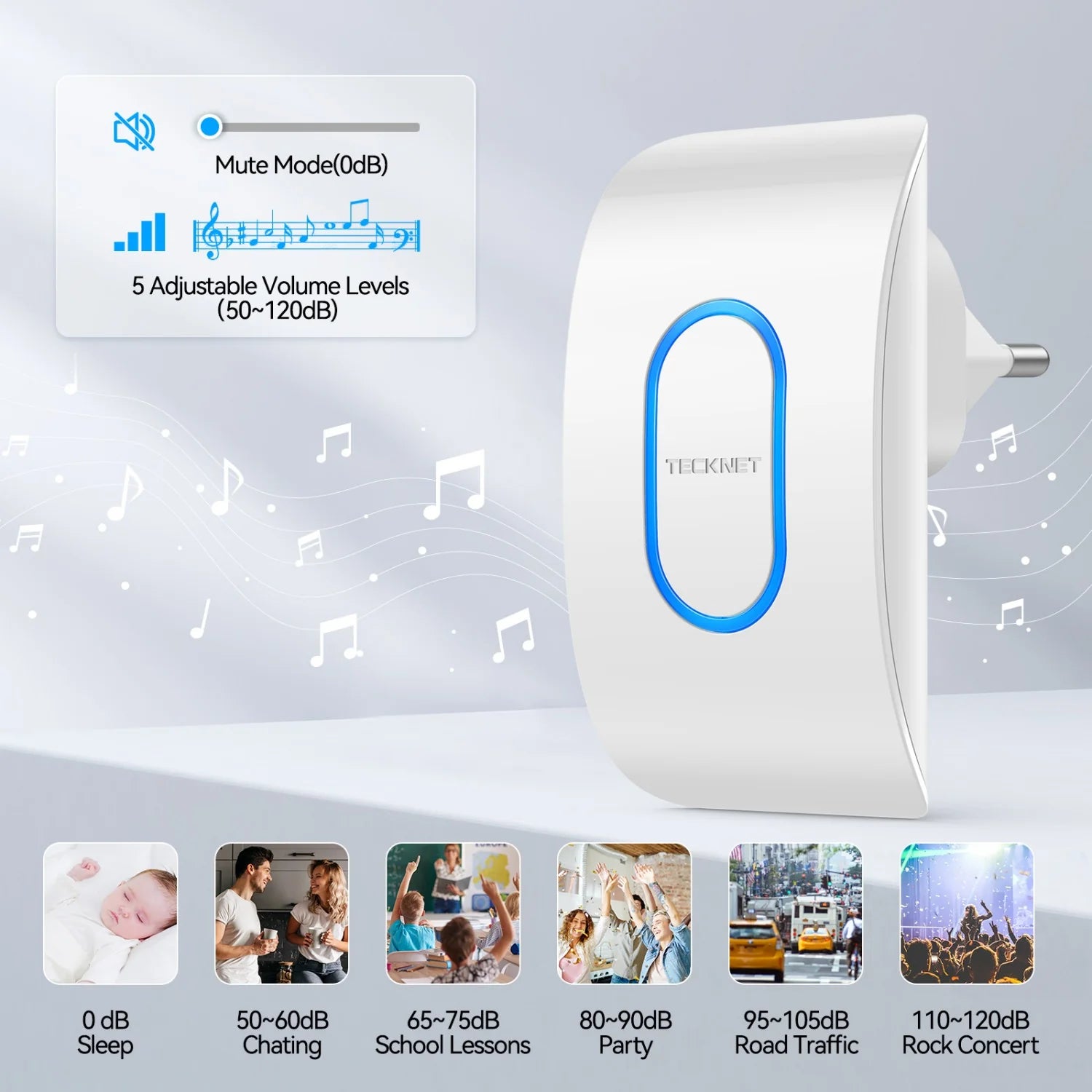 Portée de fonctionnement jusqu'à 400 m. Le signal sans fil puissant et stable vous permet d'entendre clairement la sonnette sans interférence avec les autres appareils de votre maison ou de vos voisins.