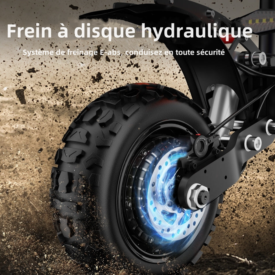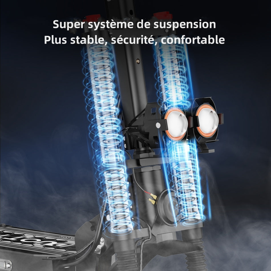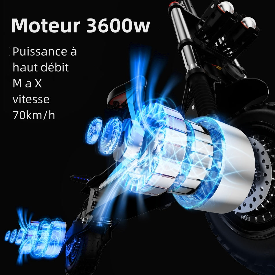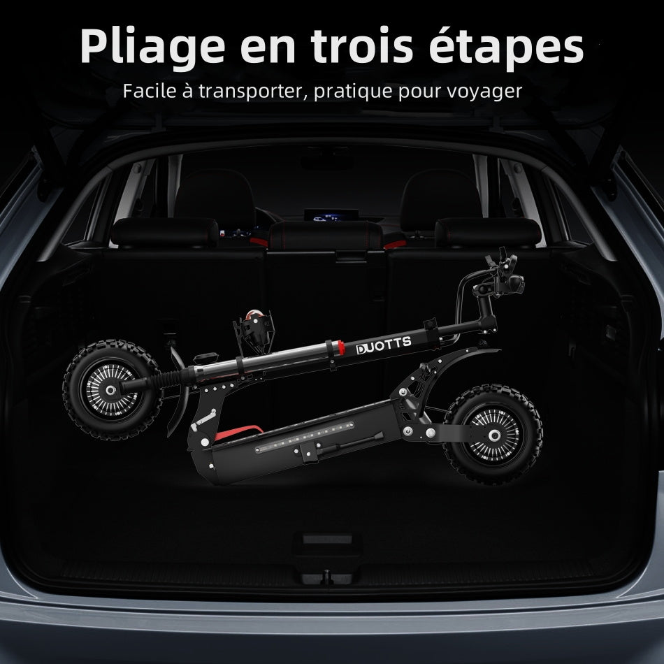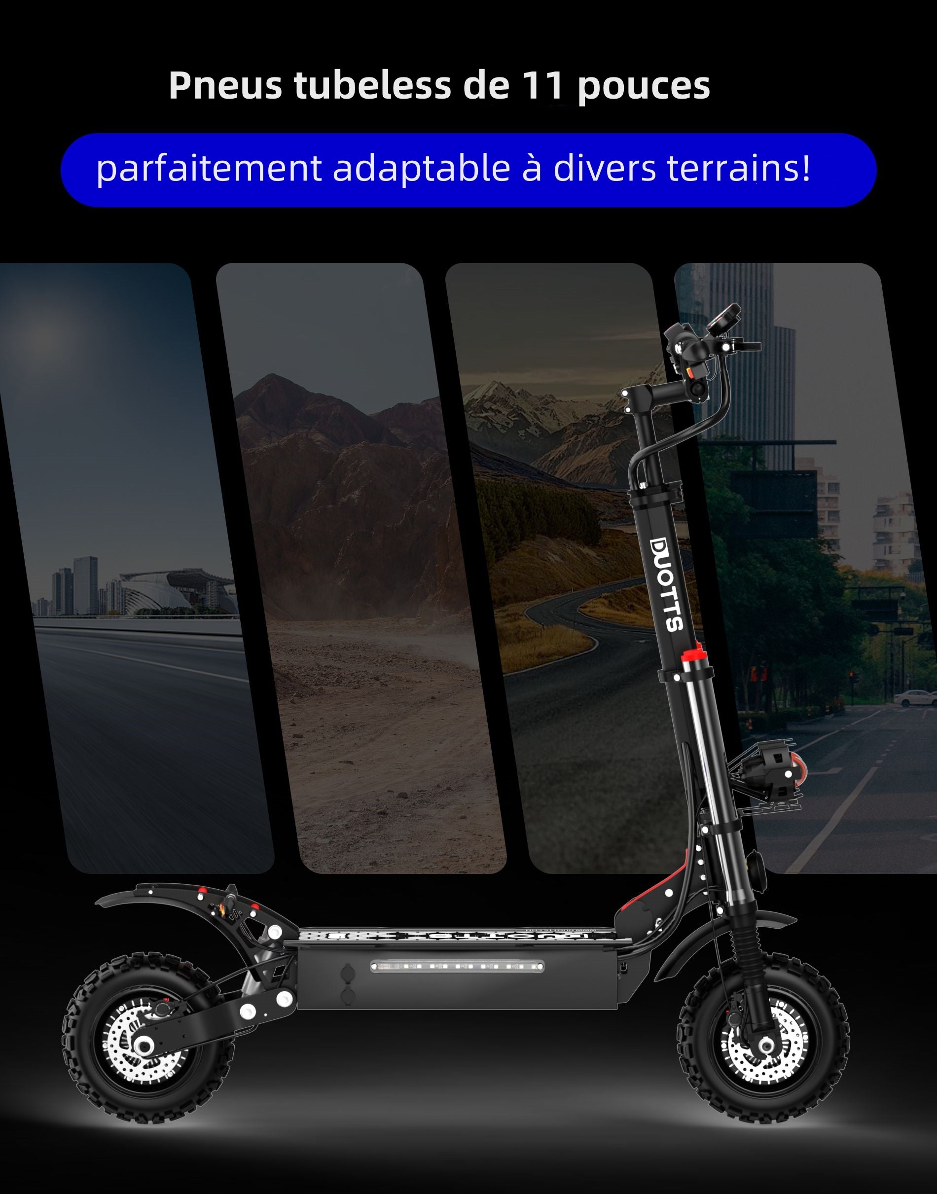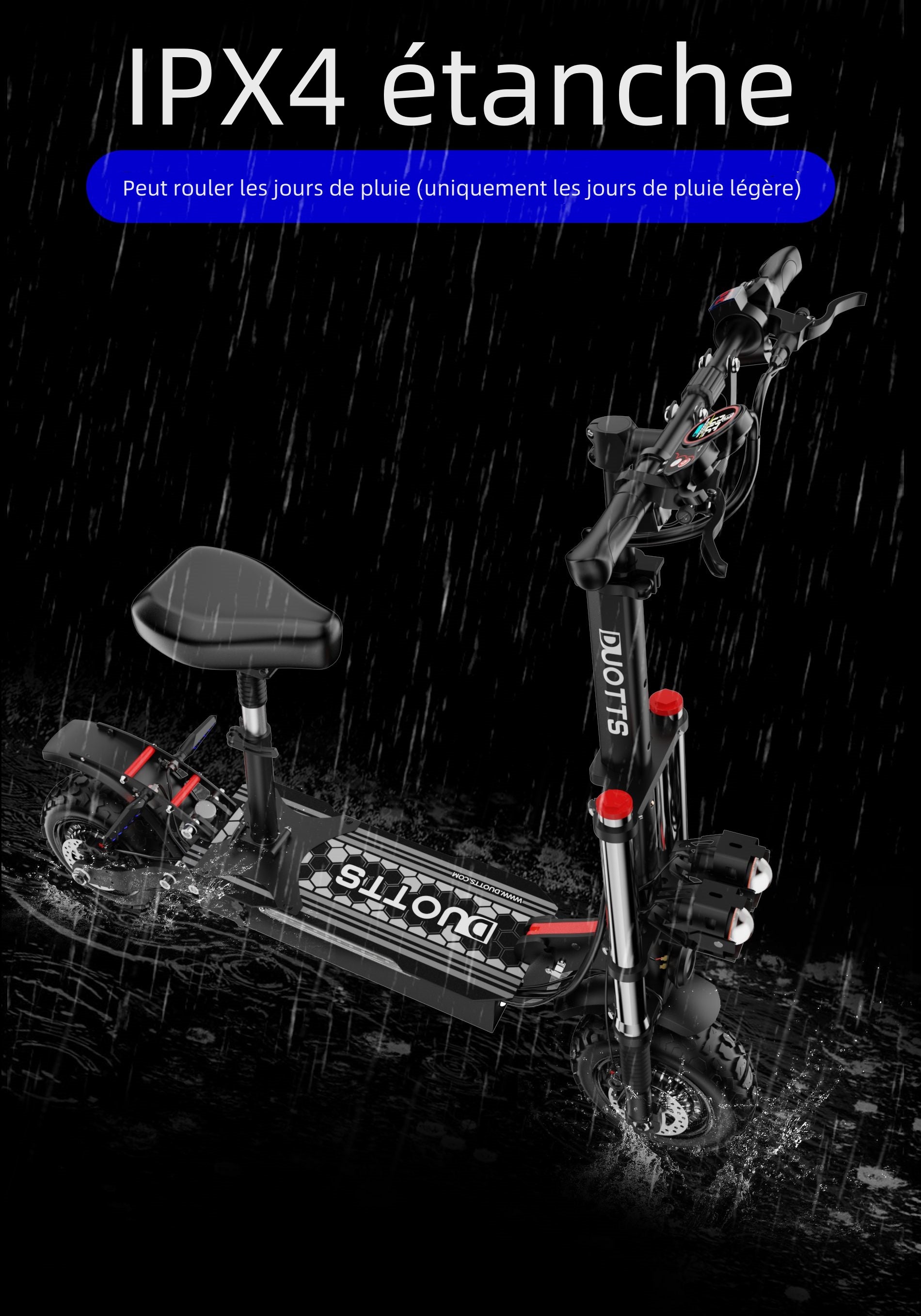 Le scooter électrique DUOTTS D66 est propulsé par un moteur de 60V 3600W. Il peut facilement faire face à des inclinaisons allant jusqu'à 45°, ce qui le rend adapté à une variété de terrains et de conditions difficiles.