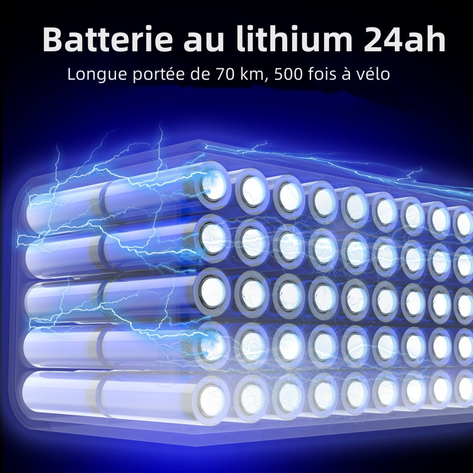 Le D66 est équipé d'une batterie 60V 24Ah avec une autonomie de 60-70 kilomètres sur une seule charge. Cela vous permet de rouler pendant de longues périodes sans avoir à vous soucier d'être à court d'énergie. Le scooter se charge en 8 à 10 heures, ce qui garantit une charge rapide et efficace.