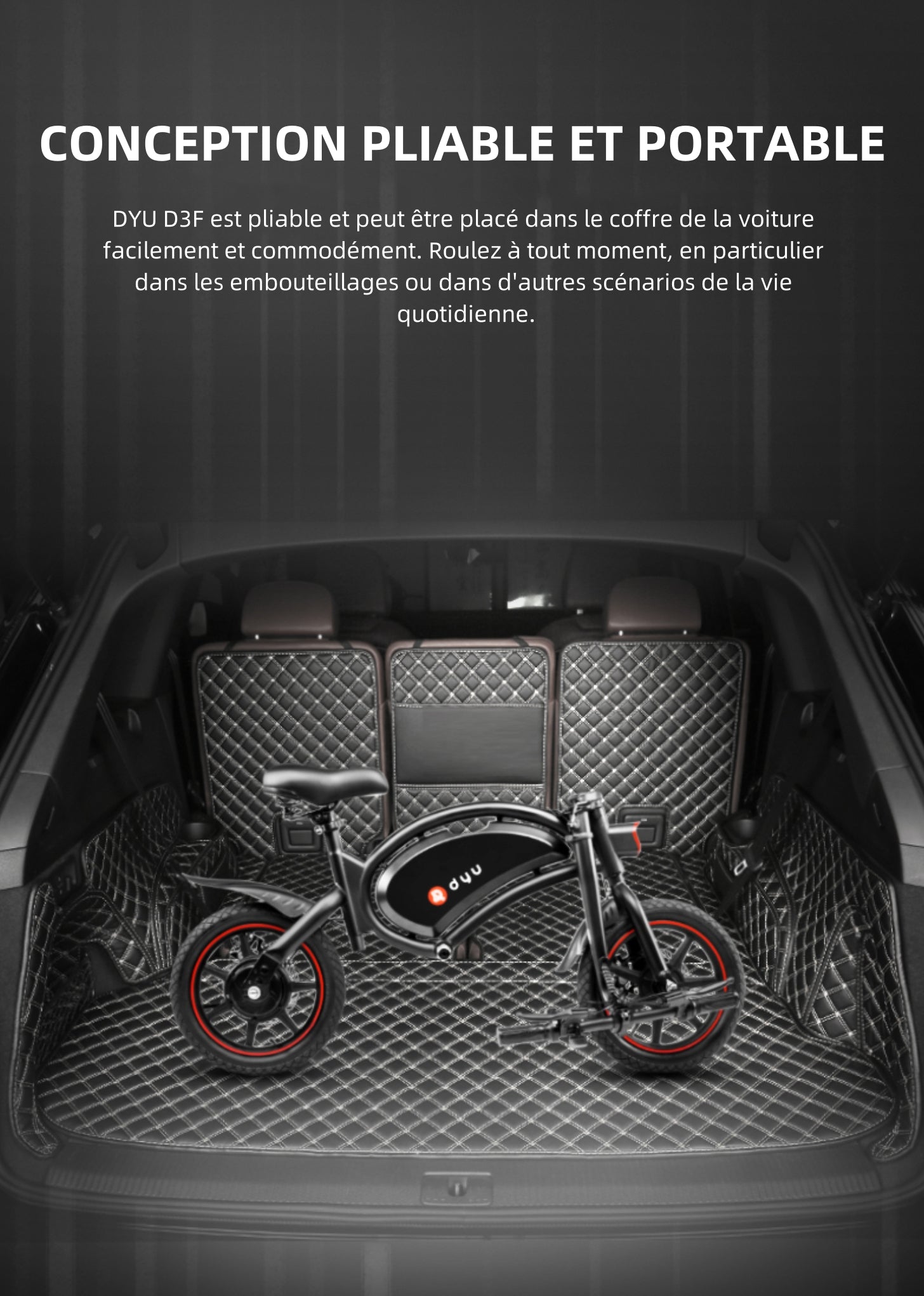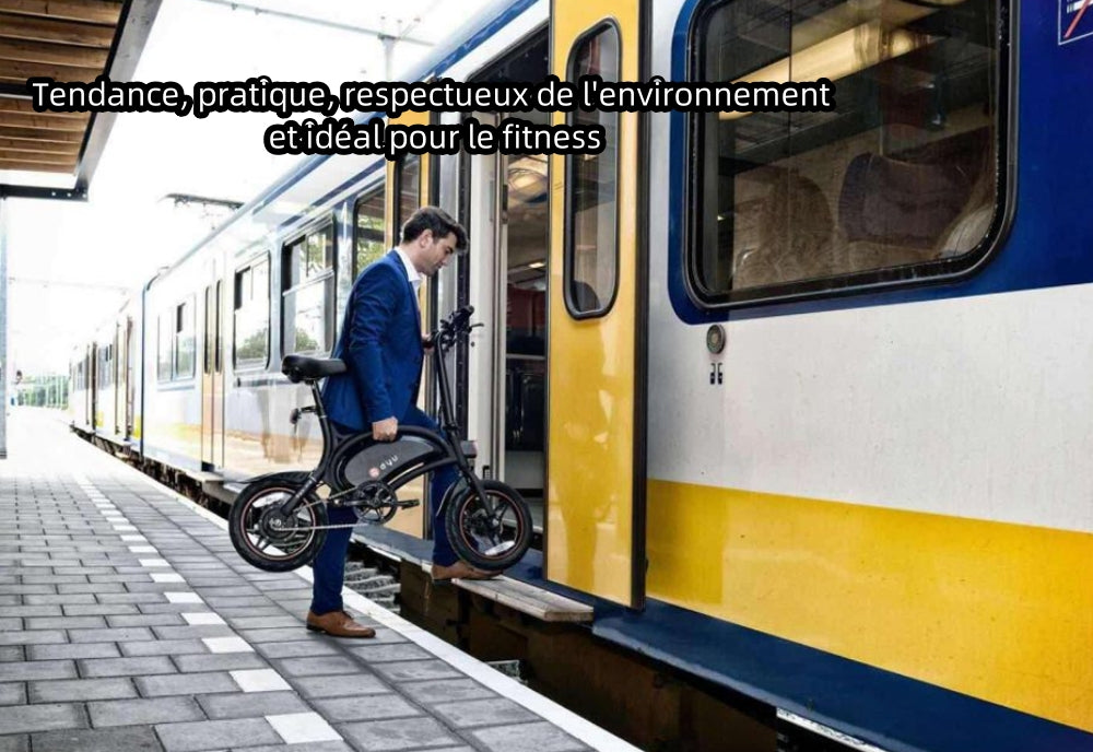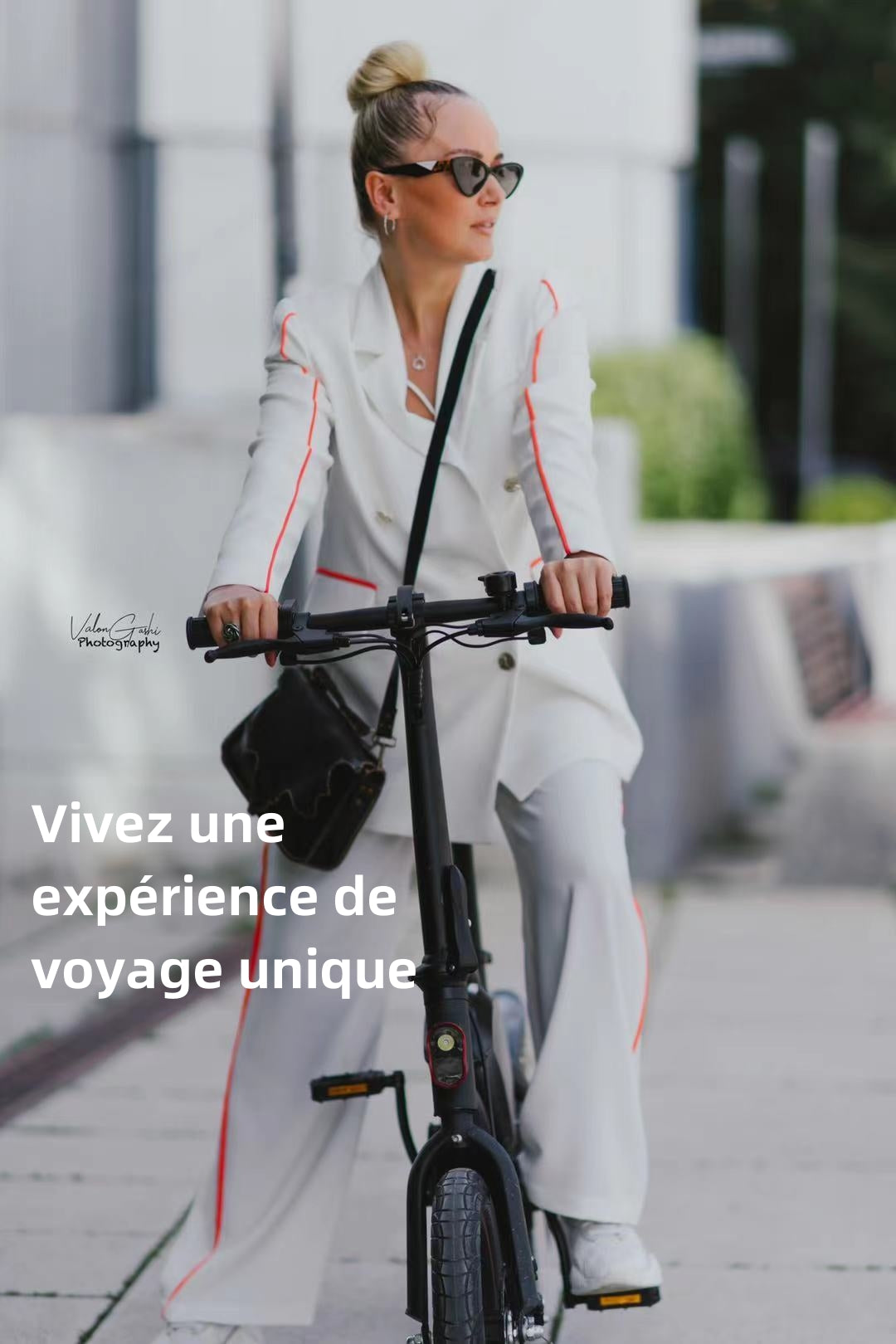 【Pliable de haute qualité】Corps en alliage d'aluminium-magnésium, faible densité, haute résistance, léger et facile à transporter. Les vélos électriques se plient rapidement et sont faciles à utiliser et à ranger. La charge maximale est de 120 kg. Les pneus intégrés en alliage d'aluminium de 14 pouces offrent une meilleure adhérence.