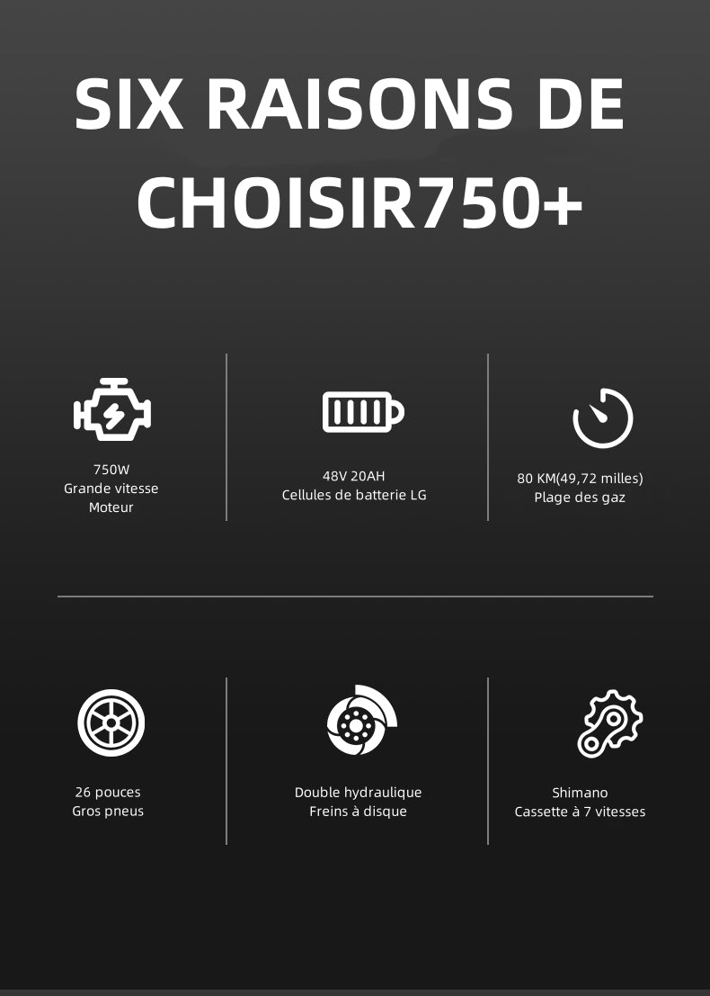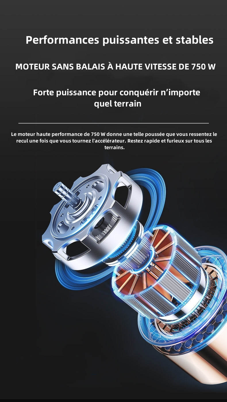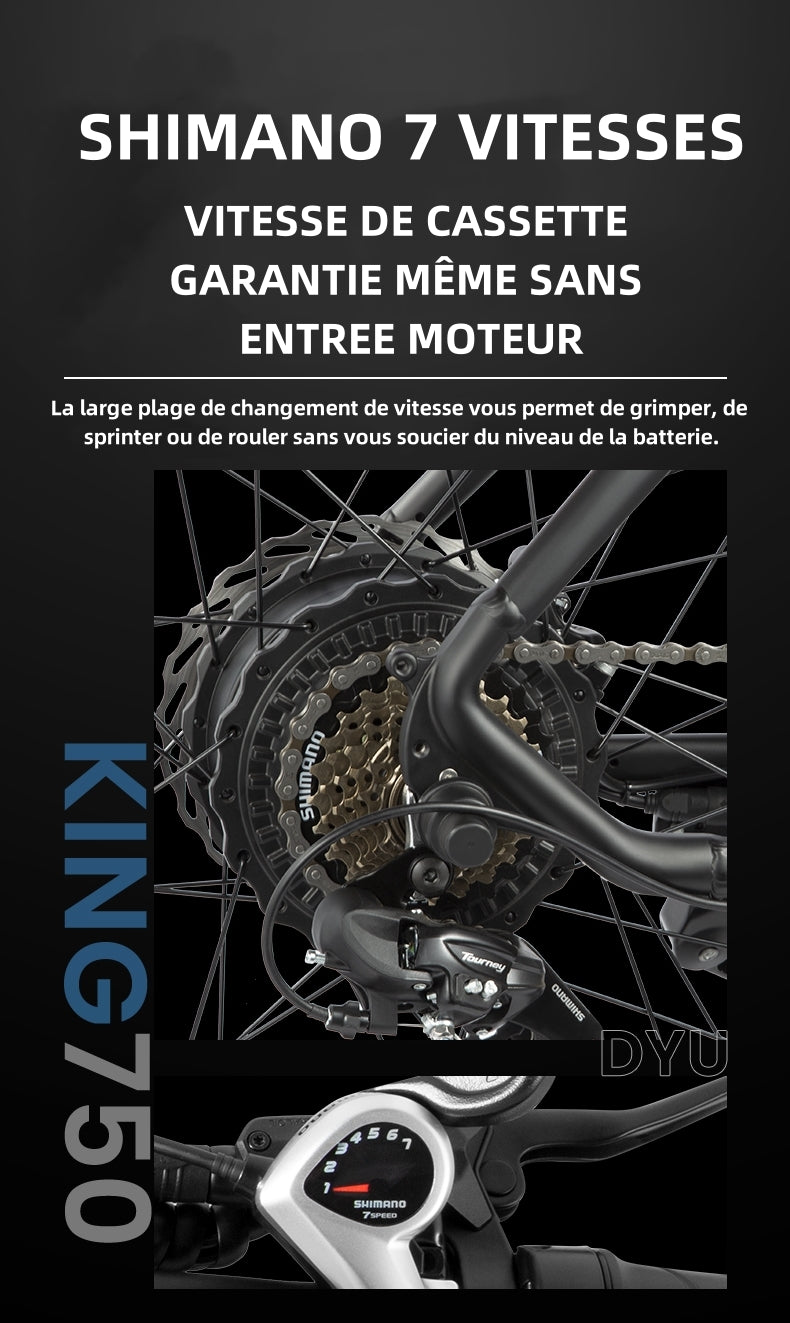Le King750 est équipé d'un moteur de 750W, ce qui permet aux conducteurs d'affronter toutes sortes de routes difficiles ! Couple de 75N/M, facilitant l'ascension.