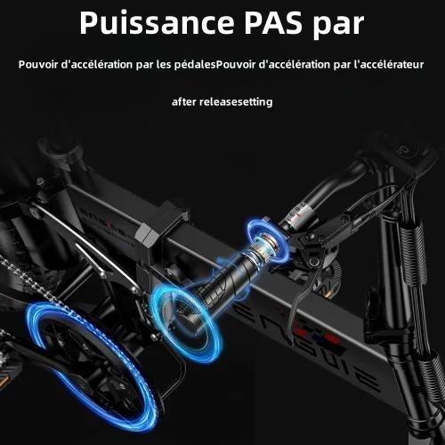 MODES ÉLECTRIQUES : Mode accélérateur (comme une moto électrique), pédalage assisté (comme un vélo électrique à pédalage assisté) ou les deux en même temps.