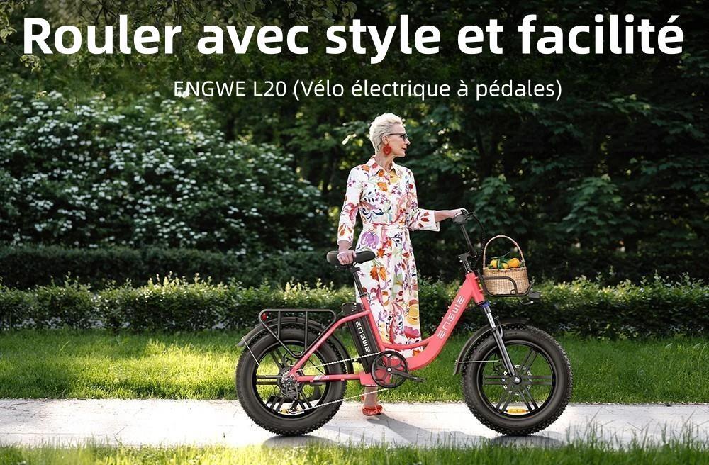 Explorez le vélo électrique ENGWE L20 - une option fiable en France. Avec une motorisation de 250W et une batterie de 624Wh, profitez d'une autonomie d'environ 60KM en mode électrique pur. Équipé de freins à disque et présenté dans une élégante couleur rose. Élevez votre expérience à vélo électrique.