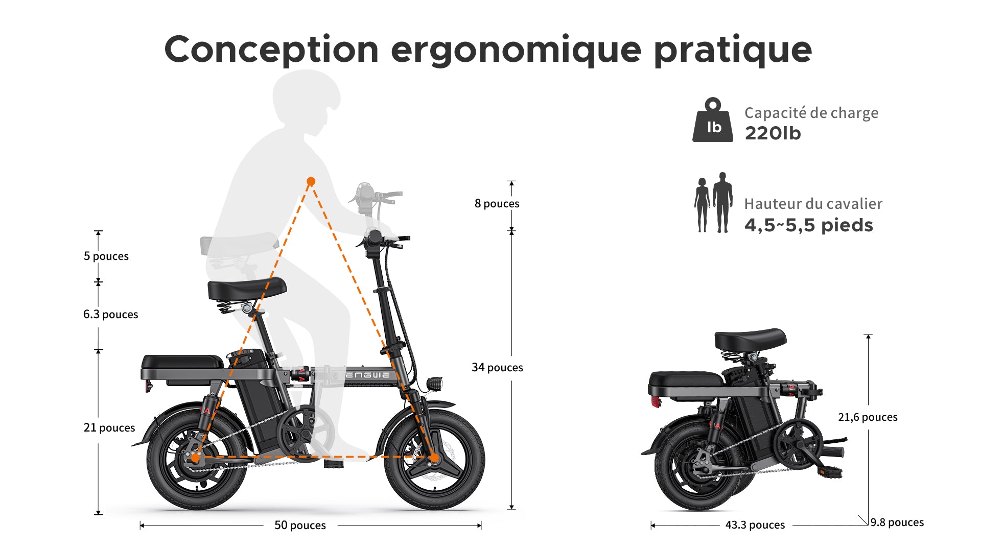 Vélo Électrique ENGWE T14 EU : Puissance 250W, Batterie 480Wh | Autonomie 45KM