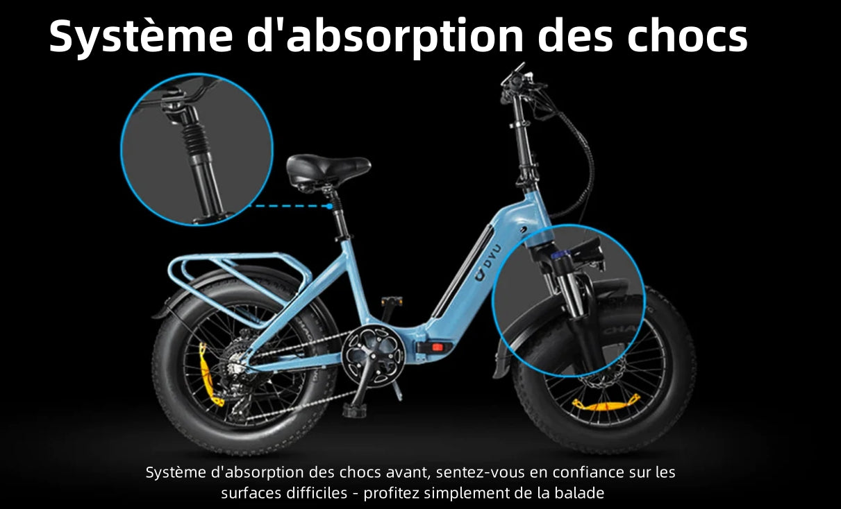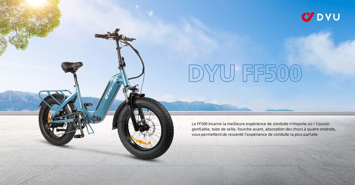 Vélo Électrique Pliant DYU FF500 20 Pouces 32km/h - Moteur 500W Batterie 48V14Ah Freins à Disque - Bleu