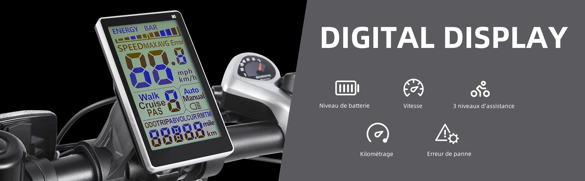 Moteur de 500 watts avec de larges pneus pour le confort et le plaisir du cycliste, même sur des surfaces complexes.